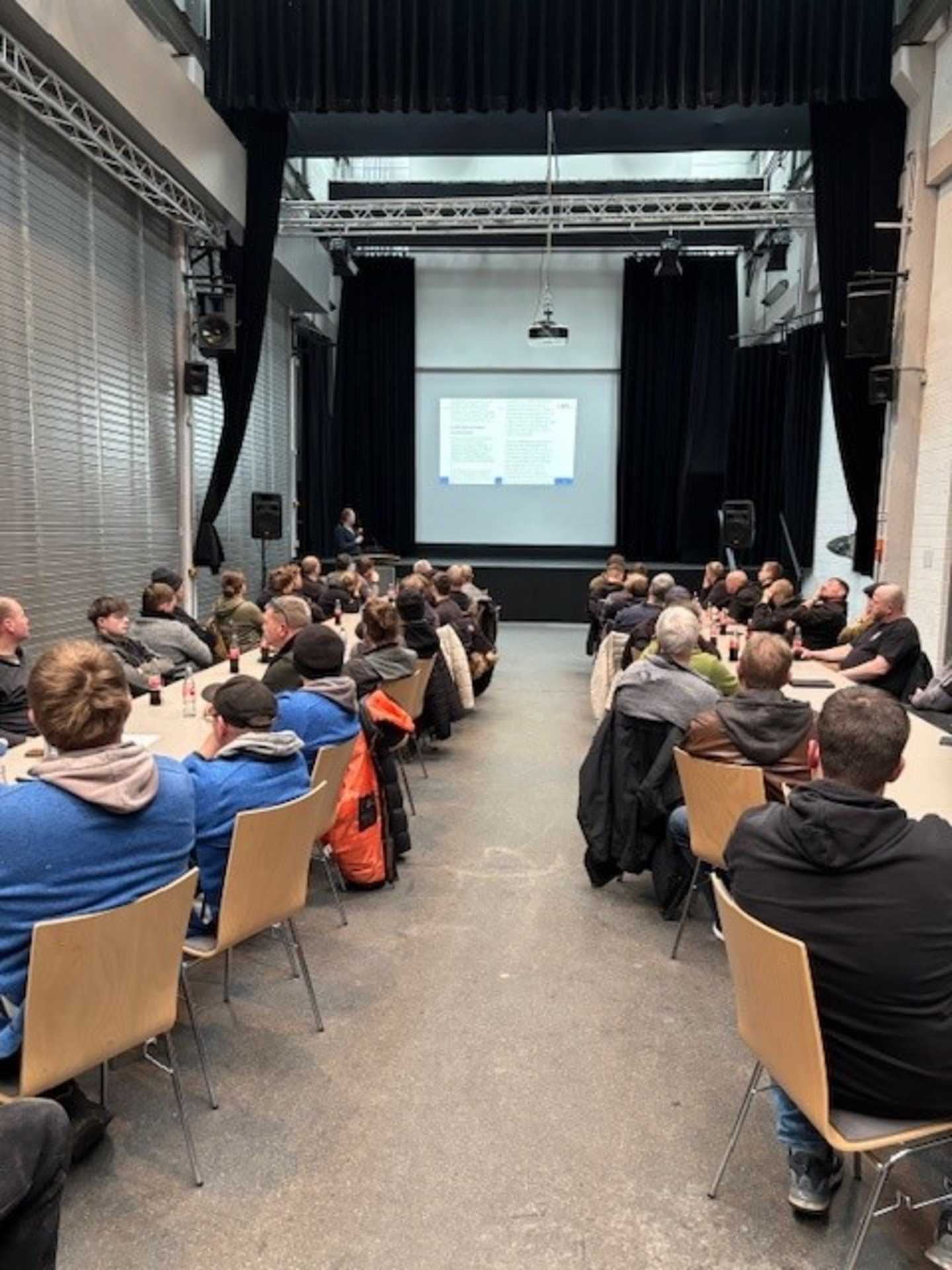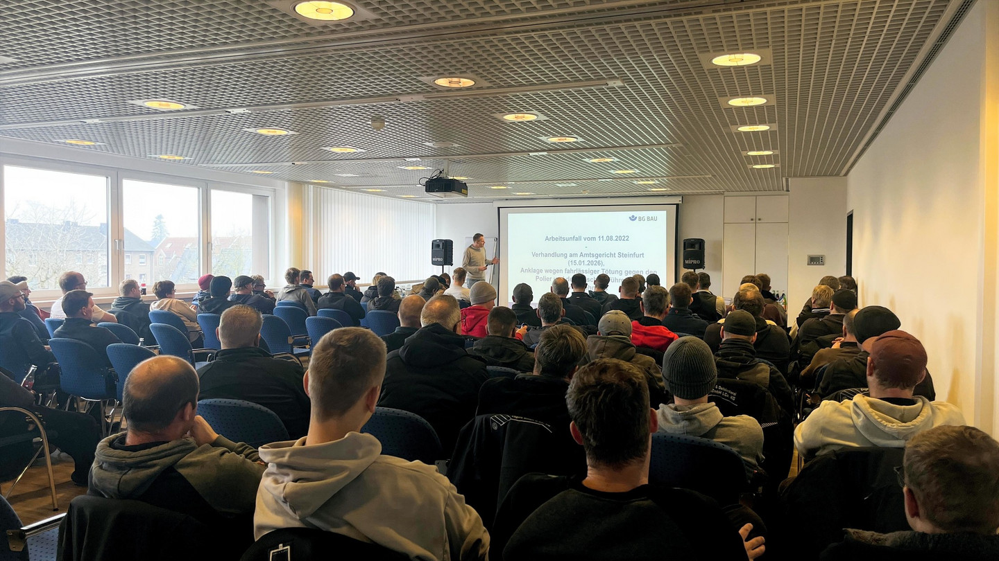 Am 06.02.2026 und 12.02.2026 wurden Zimmerer aus dem Kreis Steinfurt vom Vertreter der Bau-Berufsgenossenschaft, Marc Schimweg, über das aktuelle Unfallgeschehen auf Baustellen und in den Werkstätten informiert. Leider ist das Unfallaufkommen immer noch sehr hoch. Umso wichtiger sind entsprechende Präventionsmaßnahmen. Zu den BG-Unfällen gehören auch Unfälle mit Teleskopstaplern und auf Verkehrswegen im Zusammenhang mit der Arbeit. Die Firmenchefs waren selbstverständlich ebenfalls anwesend und reflektierten die Unfallursachen in ihren Betrieben. Marc Schimweg von der Bau-BG stellte den Anwesenden das Lernportal der BG BAU vor und ging auf alle Fragen eingehend ein. Insgesamt eine gelungene Unterweisung.