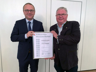 Im Rahmen der Mitgliederversammlung der Kreishandwerkerschaft erhielt Obermeister Bernhard Schrameyer aus den Händen von Kreishandwerksmeister Heinz-Bernd Lohmann den Silbernen Meisterbrief.