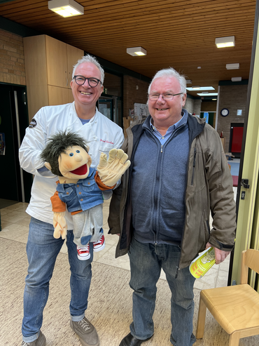 Jonas und Frank zusammen mit Obermeister im Kindergarten